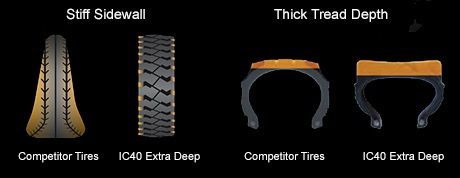 Gracias a las características especiales de este neumático - con la pared lateral rígida y amplia banda de rodadura - el IC40 ofrece una excelente estabilidad de la pared lateral fija y mejorado.